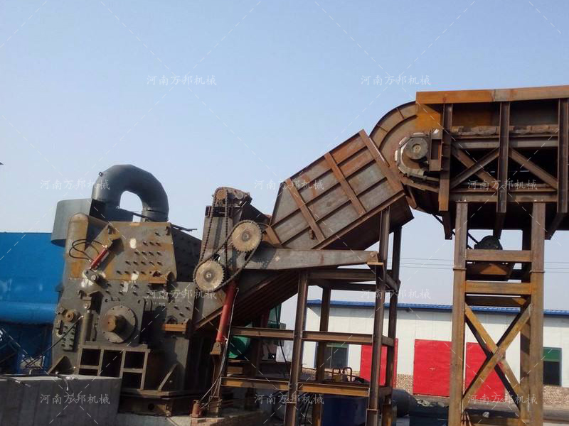 輕薄料破碎在流程上物料通過設備配置的上料輸送機物料被送入設備滑料倉內(nèi)通過強制壓輥擠壓及撥料系統(tǒng)物料被均勻的送入設備主機腔內(nèi),在主軸的高速旋轉(zhuǎn)過程中通過錘頭擊打作用物料被初級破碎,經(jīng)過破碎后的物料在機腔被通過滾輪壓制機高速擊打被揉成球狀金屬顆粒,在反復擊打作用下達到出料標準的廢舊金屬通過底部篩網(wǎng)被排出機腔,排出的成品原料通過出料輸送被送至分選系統(tǒng)從而將廢舊金屬中的雜質(zhì)、廢鐵、廢銅、廢料進行分選得到高成分的優(yōu)質(zhì)原材料被用于再生冶金加工。輕薄料破碎生產(chǎn)線在設備配置上由一臺上料輸送機、一臺輕薄料破碎機主機、一條出料輸送機、分選皮帶輸送機若干(根據(jù)分選等級或分選設備配置匹配)、配電柜、除塵器一套組成。