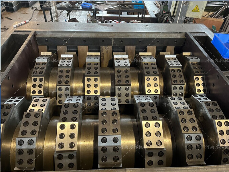 河南萬邦機(jī)械液壓金屬撕碎機(jī)在設(shè)備生產(chǎn)設(shè)計中通常采用液壓馬達(dá)作為設(shè)備大扭矩傳載的主要工具,在機(jī)構(gòu)原理上通過電機(jī)驅(qū)動液壓泵站提供液壓系統(tǒng)壓力,在液壓系統(tǒng)壓力的作用下驅(qū)動設(shè)備液壓馬達(dá)實現(xiàn)主軸旋轉(zhuǎn)從而實現(xiàn)物料的破碎處理,相對于傳統(tǒng)電驅(qū)撕碎機(jī)設(shè)備運(yùn)行更加平穩(wěn),相對傳動扭矩更大,在驅(qū)動控制系統(tǒng)上可適時調(diào)節(jié)主軸轉(zhuǎn)速,相對電信號延遲控制精度無法保證的情況萬邦液壓撕碎機(jī)具有更大優(yōu)勢。 河南萬邦機(jī)械金屬撕碎機(jī)組成: